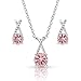 Womens Montana Silversmiths Jewelry Set: Ladies Montana Silversmiths Western Jewelry Set. A beautiful women's jewelry set with a top "X" design with a lower bright silver tone bar with the upper bar set with clear stones. The bottom of the "X" connects to a perfectly pink brilliantly round stone. Earrings have hypoallergenic stainless steel post backs. A slightly larger necklace pendant hangs on a princess length 19 inch chain. Rhodium over a brass base. Cubic zirconia. JS4298