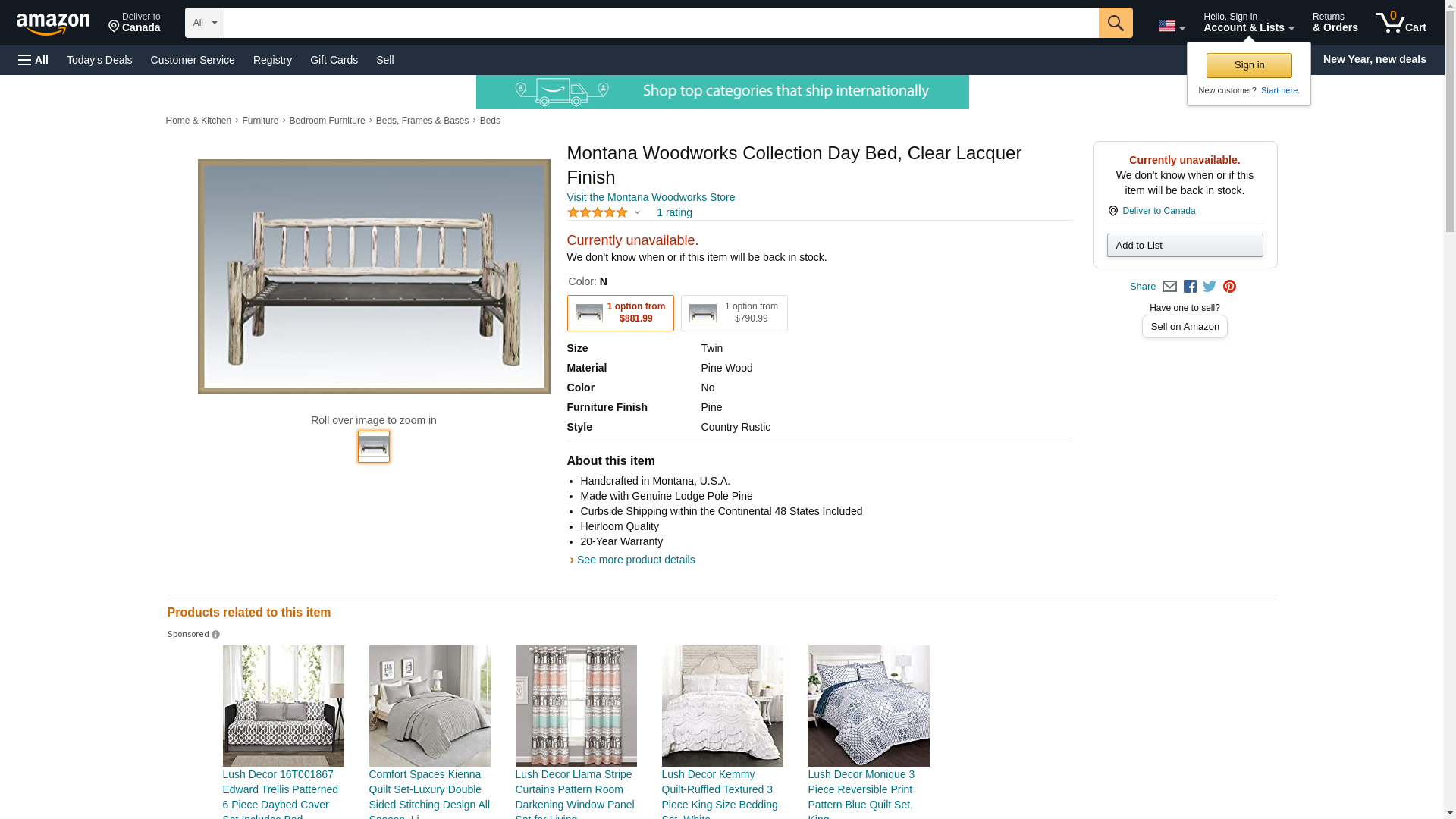 Montana Woodworks Collection Day Bed, Clear Lacquer Finish