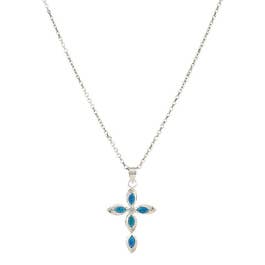 | Feature | Cross Pendant Featuring Simulated Blue Opal Stones And Silver Setting |