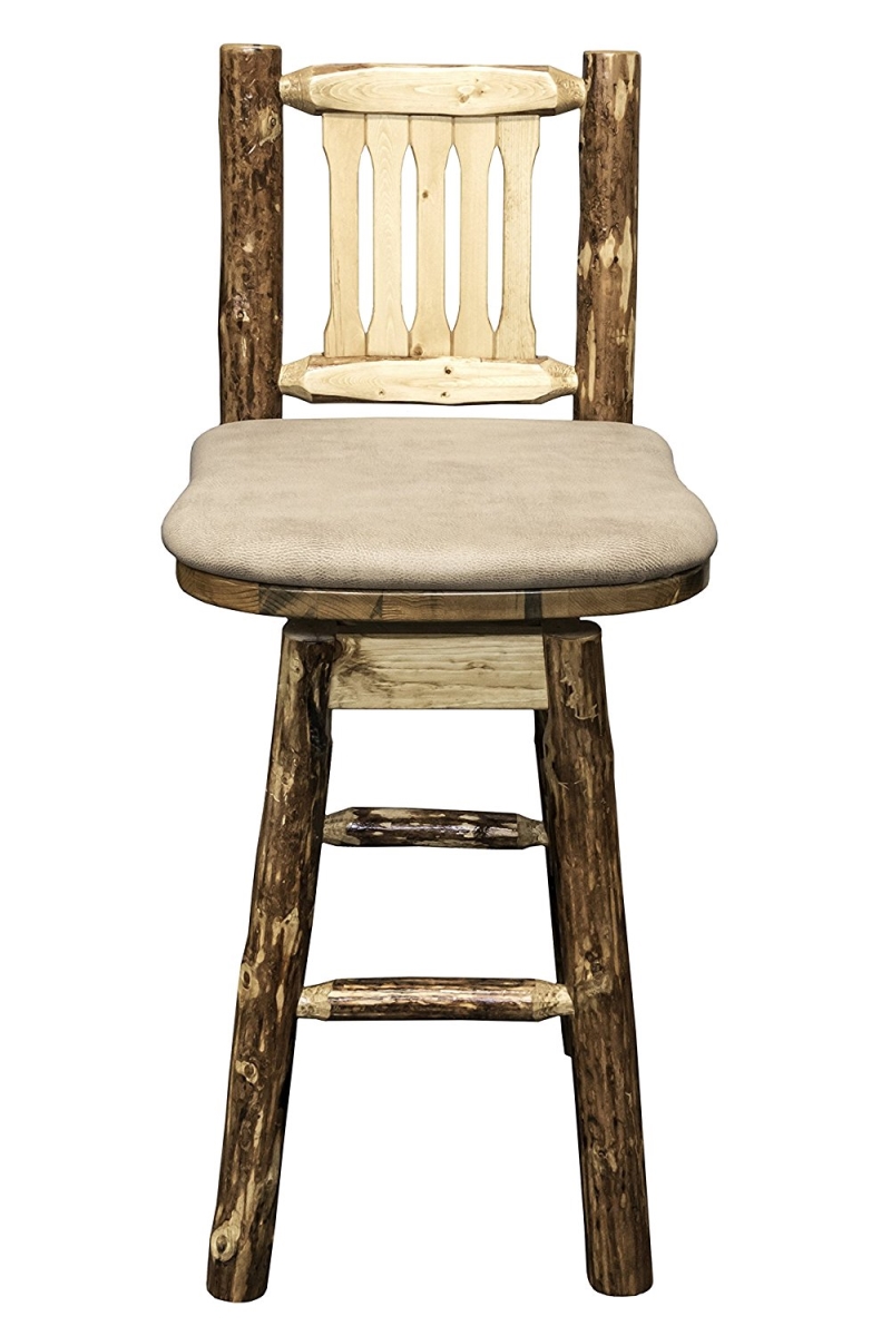 Montana Woodworks MWGCBSWSNRBUCK Glacier Country Collection Barstool Swivel Back with Upholstered Seat - Buckskin Patter