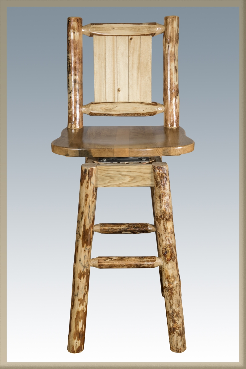 Montana Woodworks MWGCBSWSNRLZPINE Glacier Country Barstool with Back & Swivel with Laser Engraved Pine Tree Design