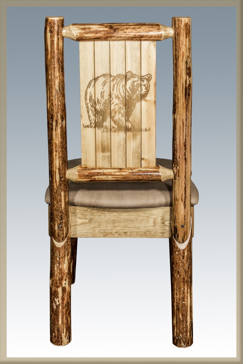 Montana Woodworks MWGCKSCNBUCKLZBEAR Glacier Country Side Chair - Buckskin Upholstery with Laser Engraved Bear Design