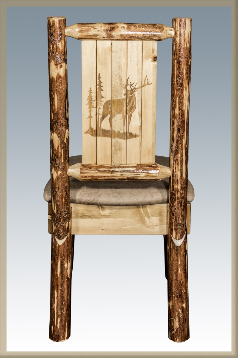 Montana Woodworks MWGCKSCNBUCKLZELK Glacier Country Side Chair - Buckskin Upholstery with Laser Engraved Elk Design
