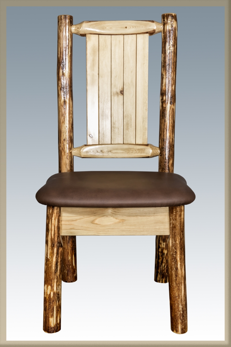 Montana Woodworks MWGCKSCNSADDLZWOLF Glacier Country Side Chair - Saddle Upholstery with Laser Engraved Wolf Design