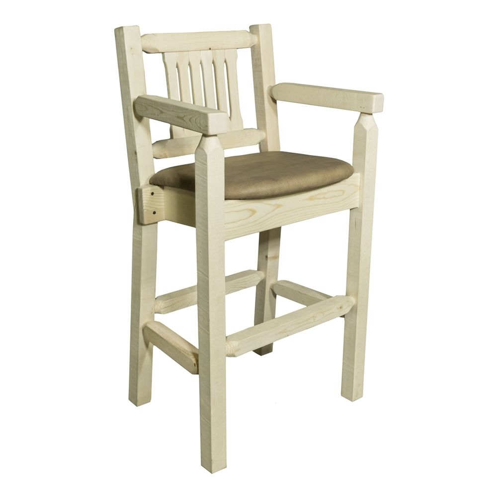Montana Woodworks MWHCBSWCASVBUCK Homestead Collection Captains Barstool, Clear Lacquer Finish with Upholstered Seat
