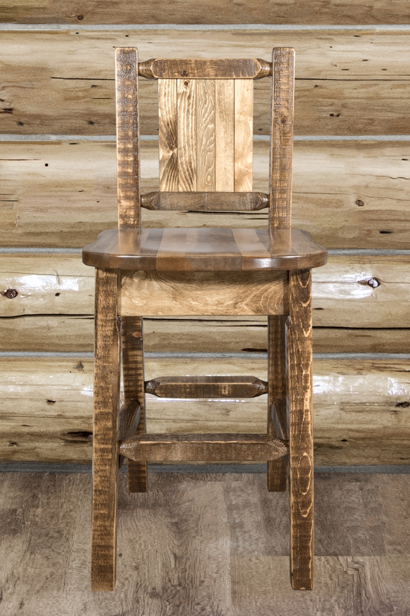Montana Woodworks MWHCBSWNRSL24LZBRONC Homestead Counter Height Back Barstool with Laser Engraved Bronc Design, Stai