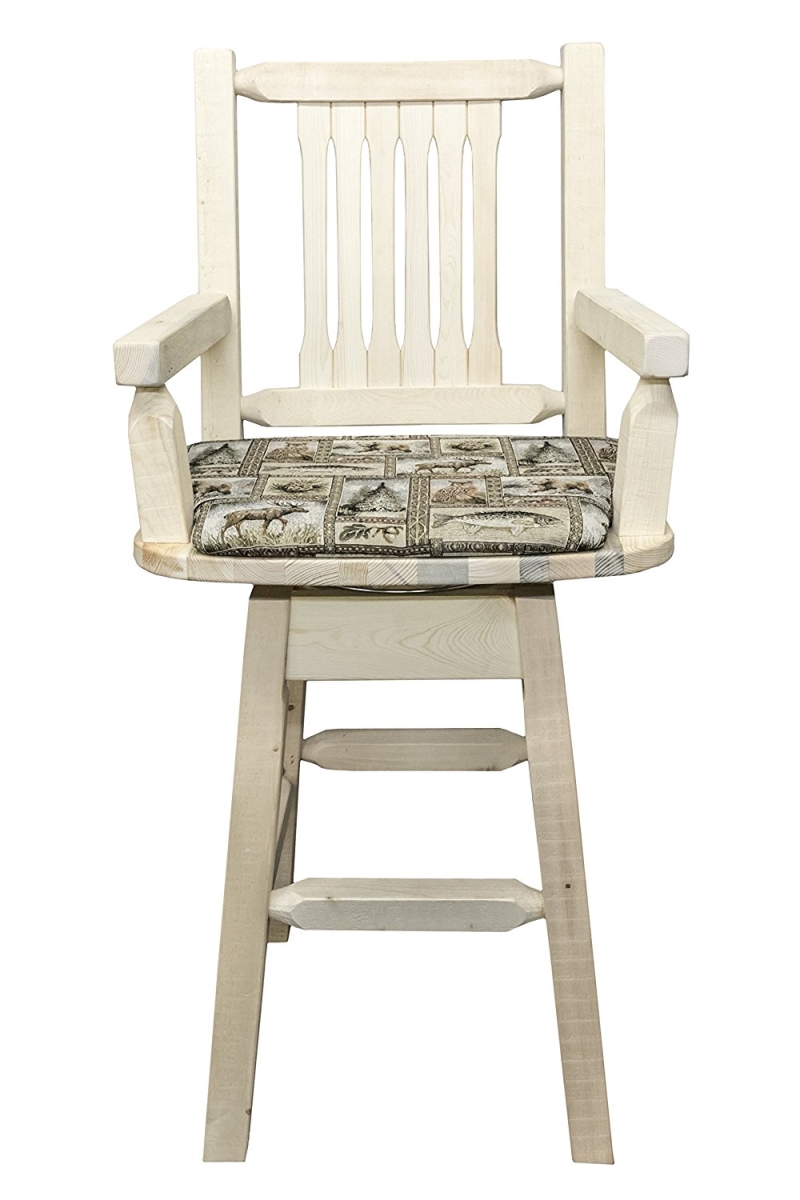 Montana Woodworks MWHCBSWSCASWILD Homestead Collection Captains Barstool with Swivel Back, Ready to Finish with Upho