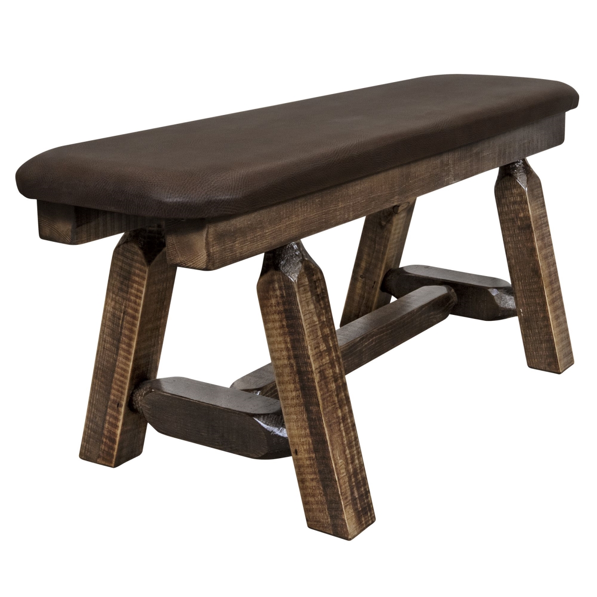 Montana Woodworks MWHCPSB4SLSADD 45 in. Homestead Collection Plank Style Bench with Saddle Upholstery, Stain & Clear