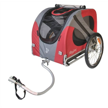 Cabin suitable as car seat or training crate. Lowered center of gravity for optimal stability. Seat position and tow bar alignment designed for safety and stability. Side support designed to prevent leaning to rotating wheels. Fits through most doors with it's 30.5 inches (78 cm) width. Two section roof-front opening designed for optimal riding pleasure for different breeds. Weight capacity: 100 lbs.. 54 in. L x 30 in. W x 33 in. H (36 lbs). Color: Red. Assembly Required. Welcome to the DoggyRiders club. Since 2003, the DoggyRide rated best economy version of dog bike trailers. This number one trailer overtime has become a travel and outdoor solution not only for biking trips, but also as multi-functional (car) carrier and optional dog stroller. Enjoy the outdoor trips, from a jaunt to the park or a camping adventure. How about a "bring your dog to work day" any day? This product folds easily and converts to stroller (with additional kit), car seat or crate.
