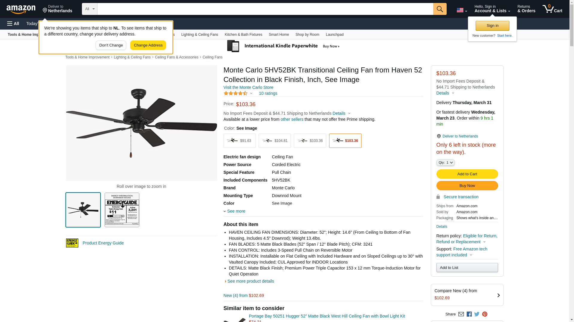 Monte Carlo 5HV52BK Transitional Ceiling Fan from Haven 52 Collection in Black Finish, Inch, See Image