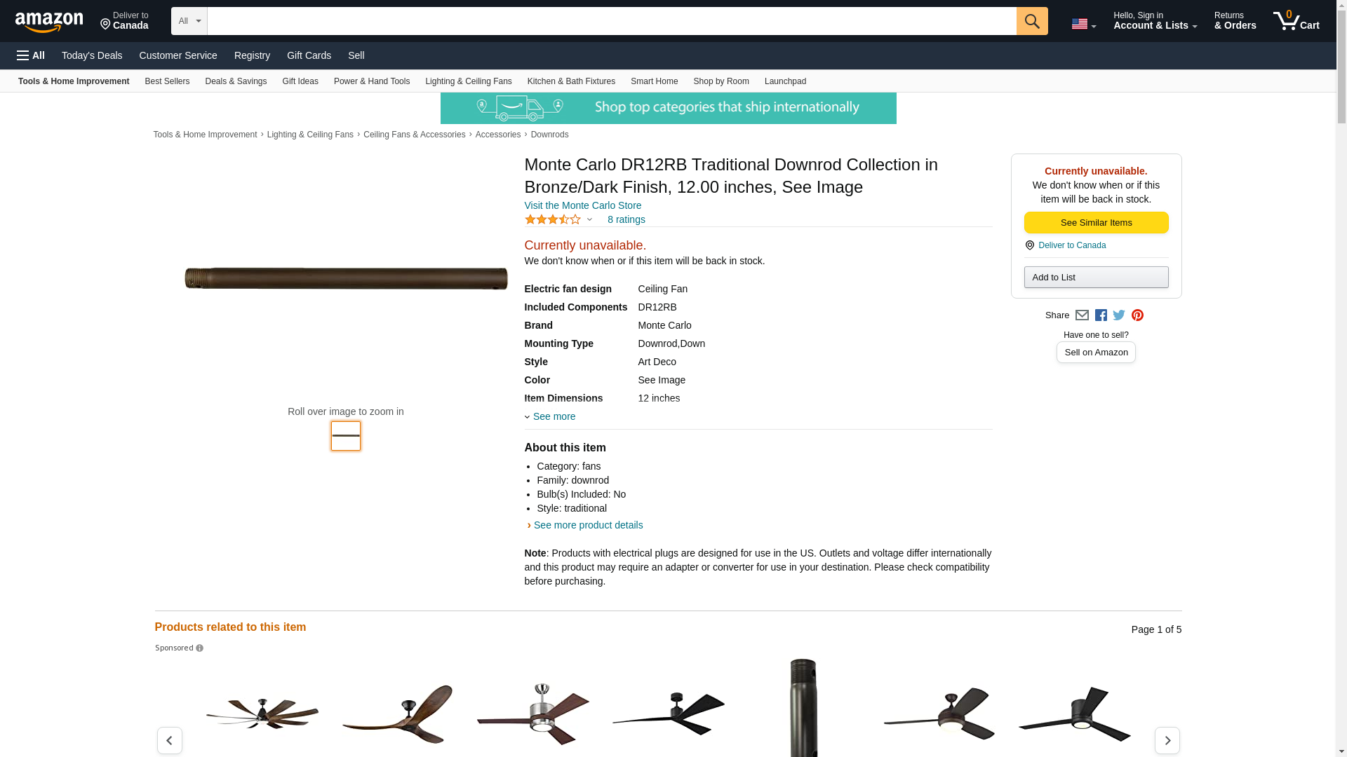 Monte Carlo DR12RB Traditional Downrod Collection in Bronze/Dark Finish, 12.00 inches, See Image