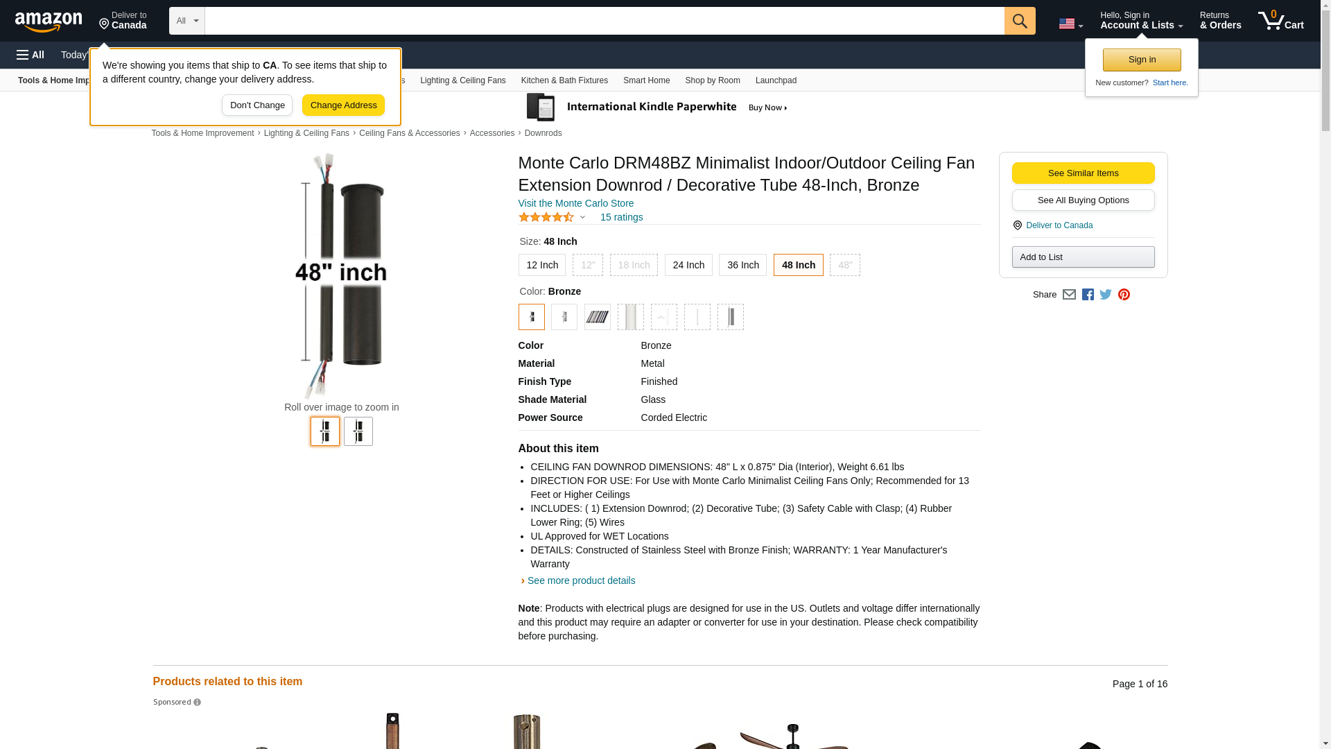 Monte Carlo DRM48BZ Minimalist Indoor/Outdoor Ceiling Fan Extension Downrod / Decorative Tube 48-Inch, Bronze