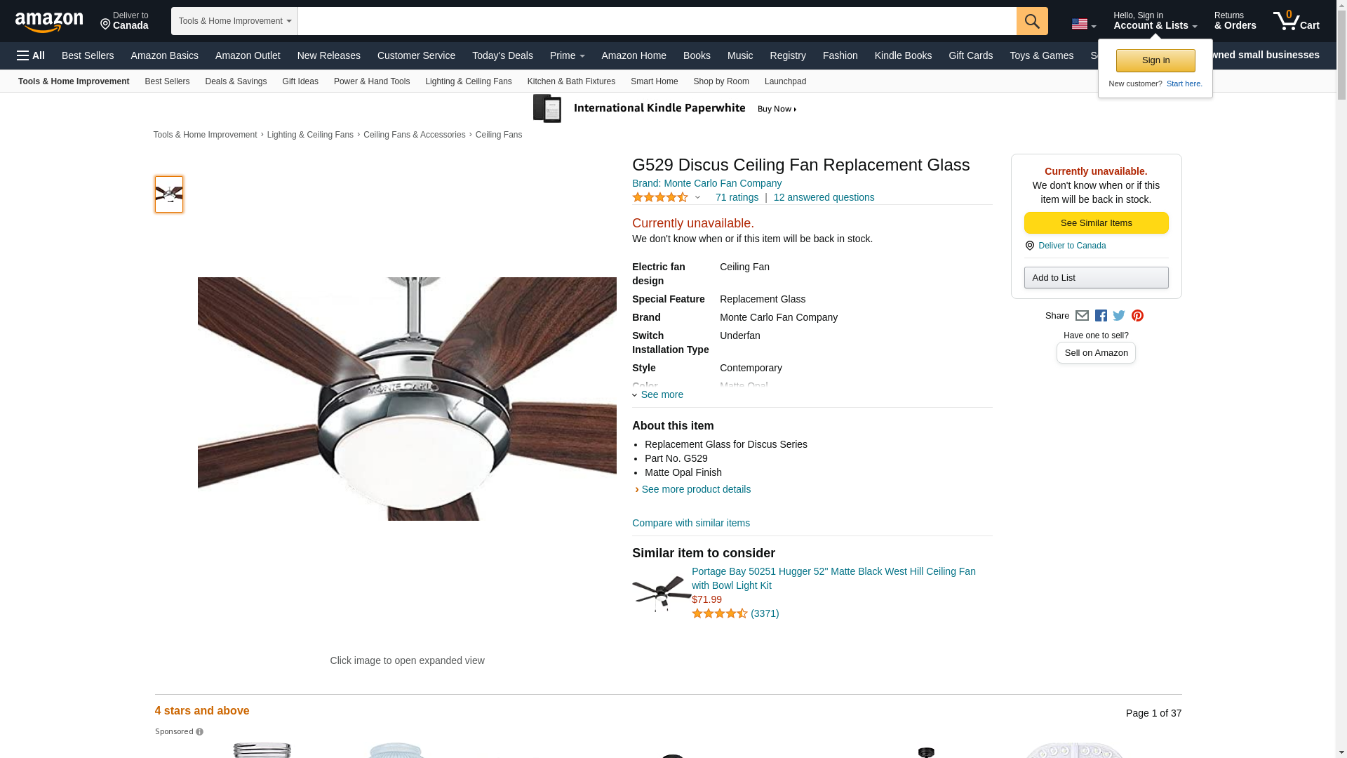 G529 Discus Ceiling Fan Replacement Glass