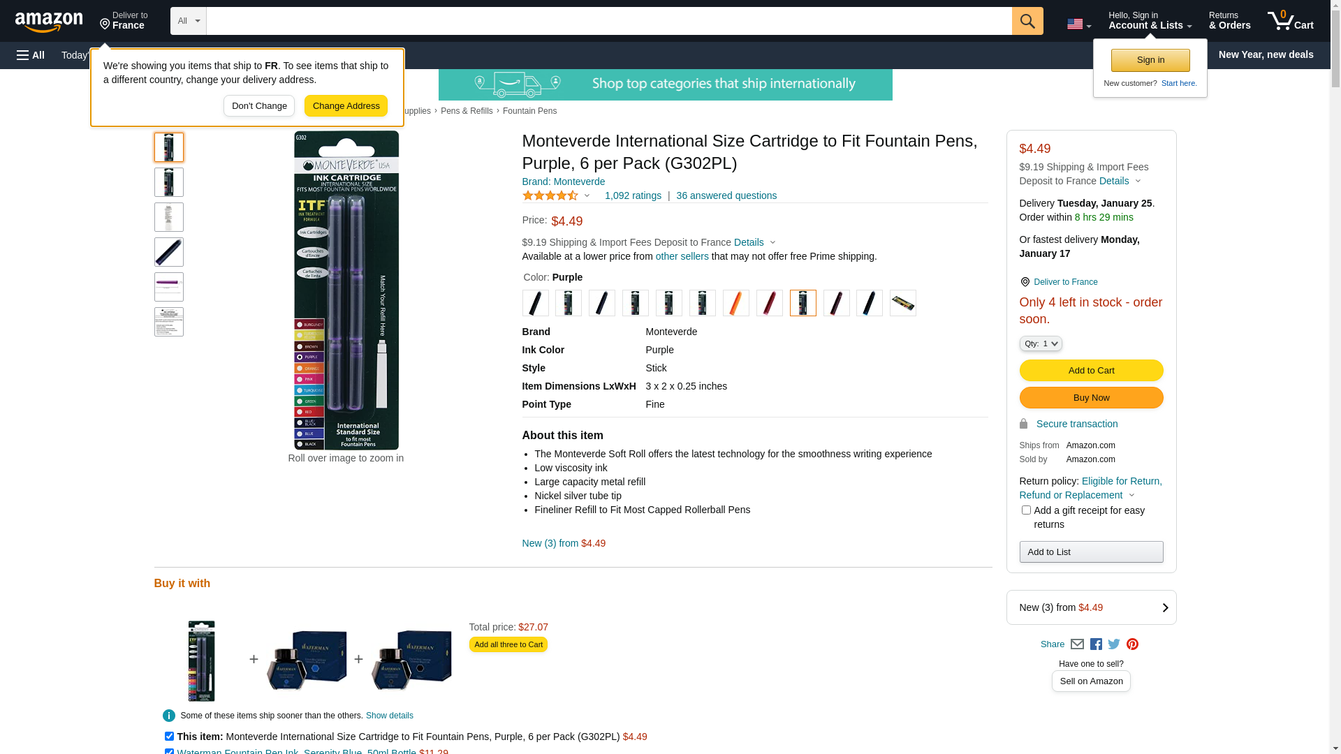 Monteverde International Size Cartridge to Fit Fountain Pens, Purple, 6 per Pack (G302PL)