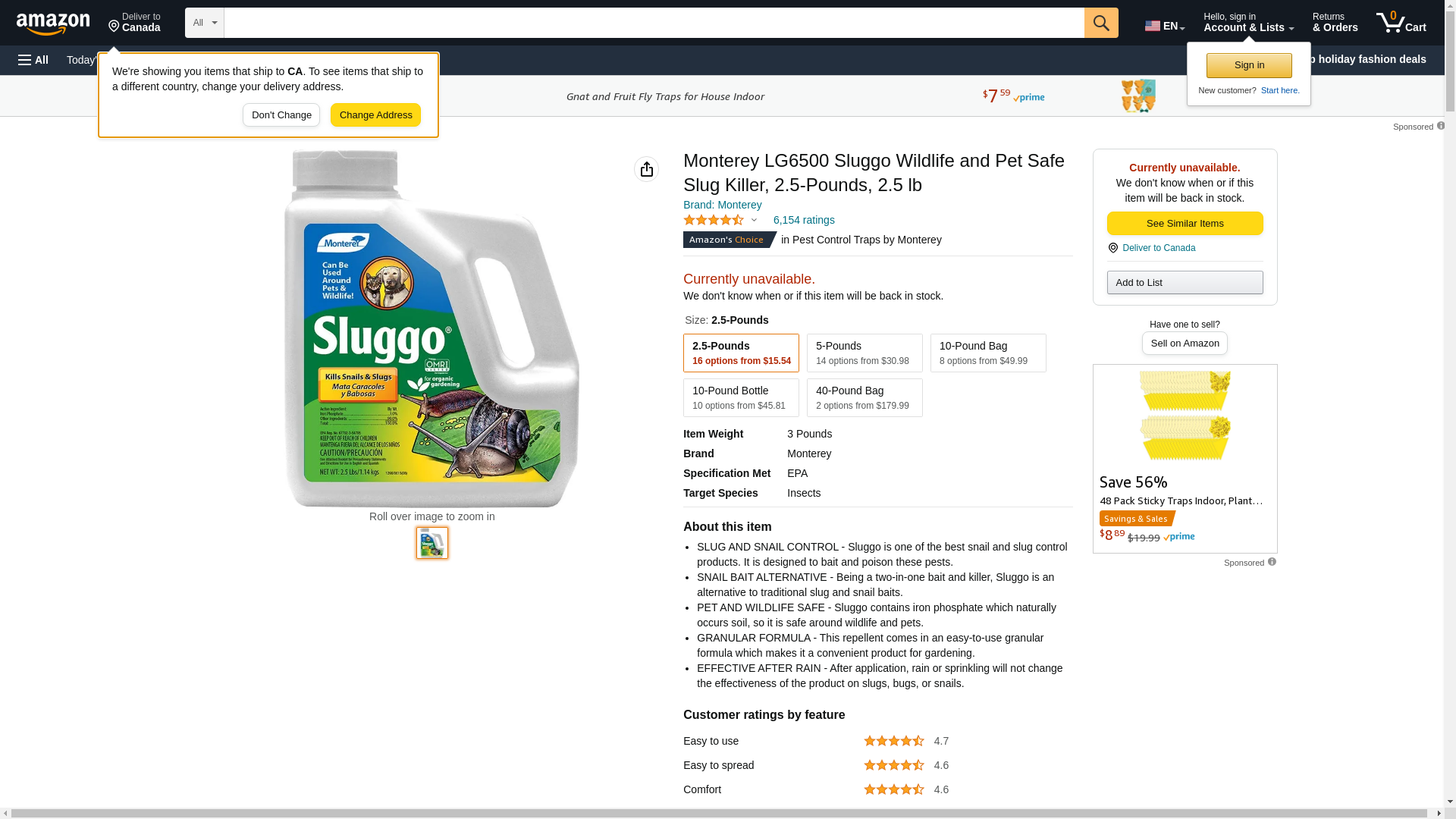 Monterey - Sluggo - Wildlife and Pet Friendly - Snail & Slug Killer, OMRI Listed for Organic Gardening - 2.5-Pounds