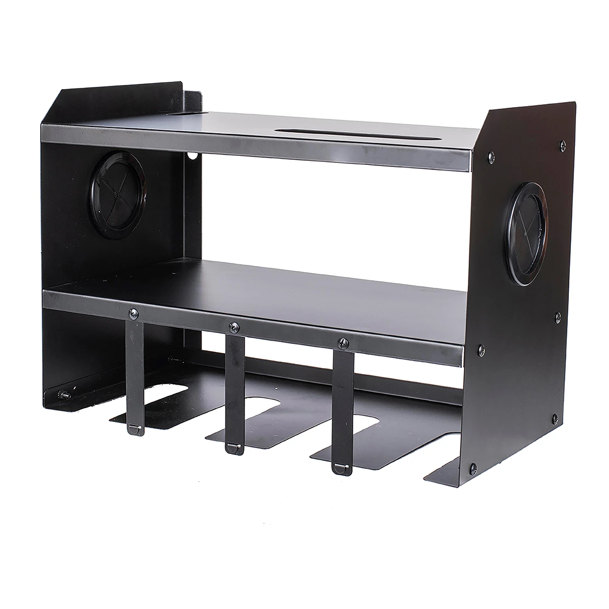 - QUICK AND EASY INSTALLATION: Power tool rack and holder assembles in minutes and side grommets provide superior cord management for a neat and tidy workspace