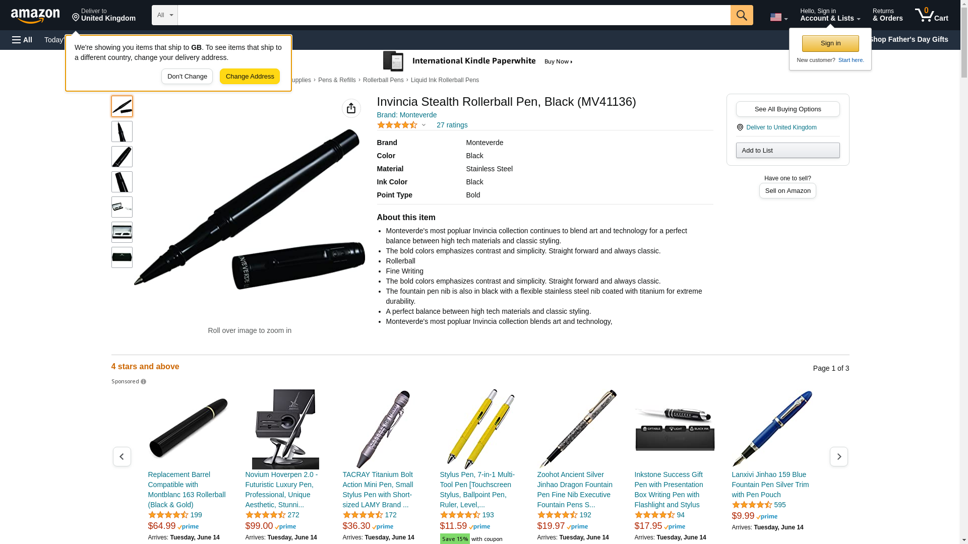 Invincia Stealth Rollerball Pen, Black (MV41136)