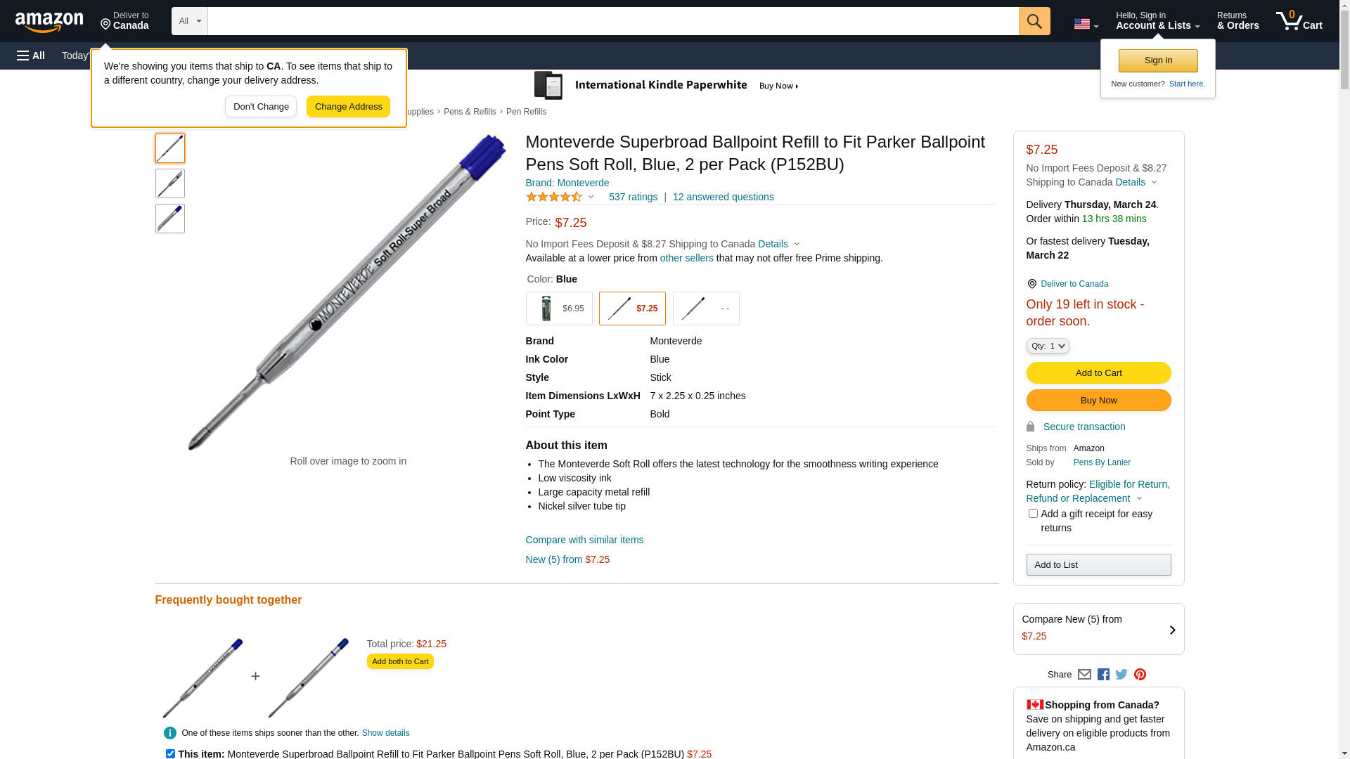 Monteverde Superbroad Ballpoint Refill to Fit Parker Ballpoint Pens Soft Roll, Blue, 2 per Pack (P152BU)