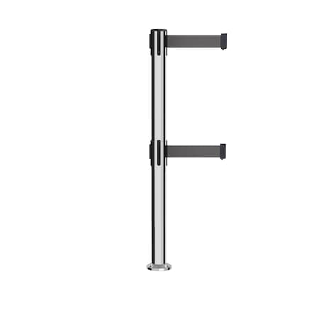 Stanchion Dual Belt Barrier Fixed Base Pol.Steel Post 9ft.Dk Gry Belt