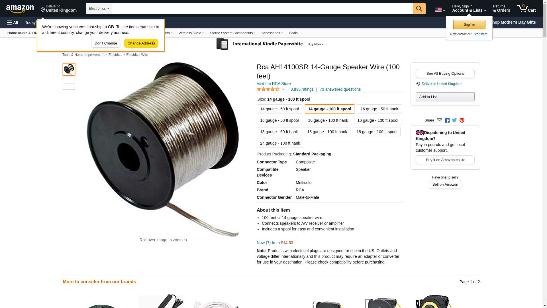 Rca AH14100SR 14-Gauge Speaker Wire (100 feet)