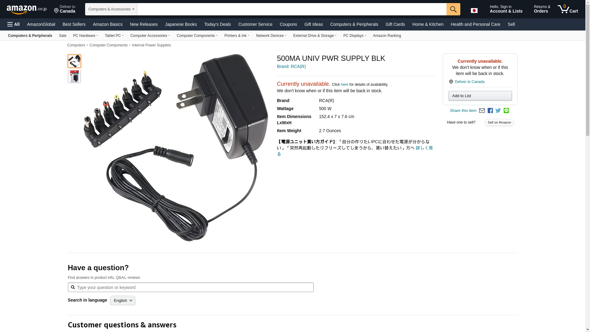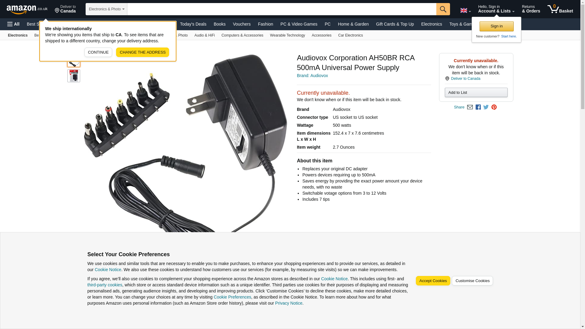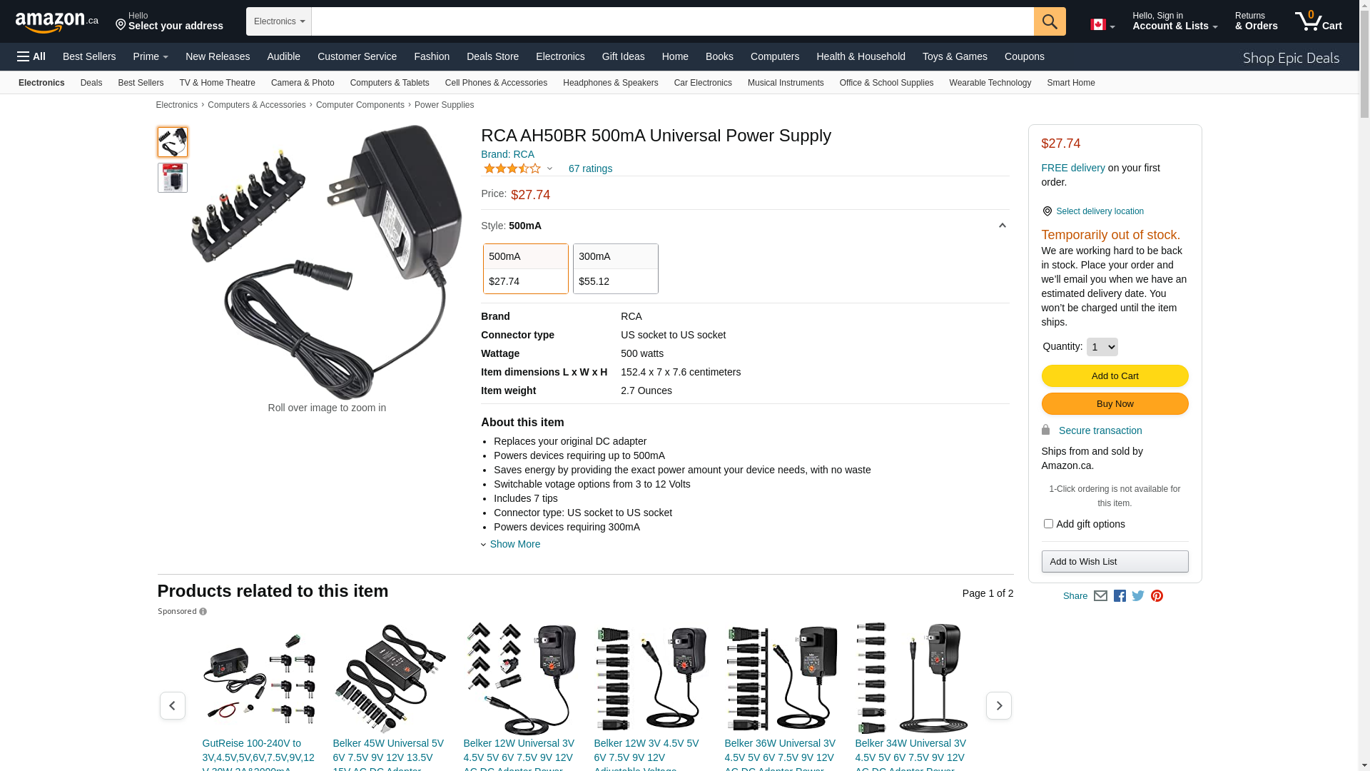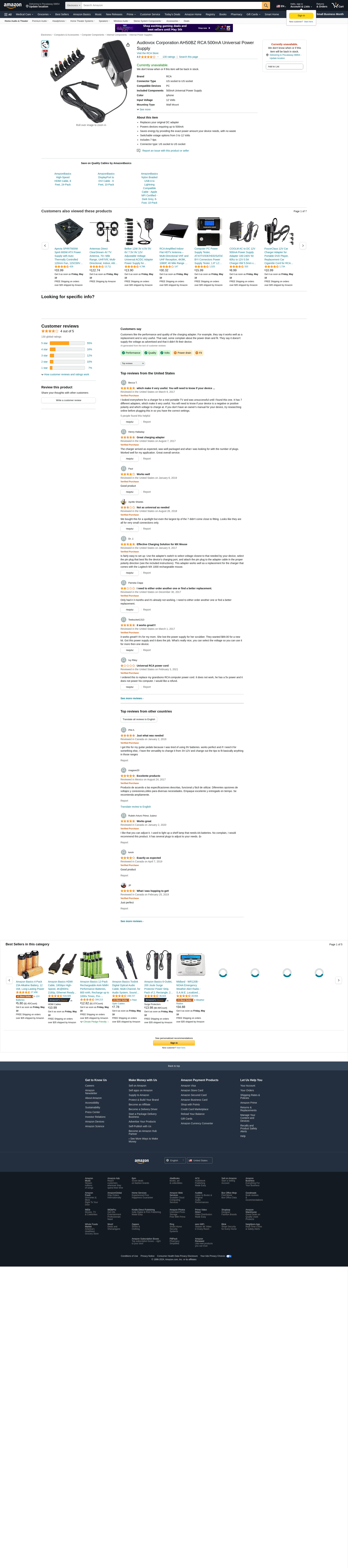 Audiovox Corporation AH50BZ RCA 500mA Universal Power Supply