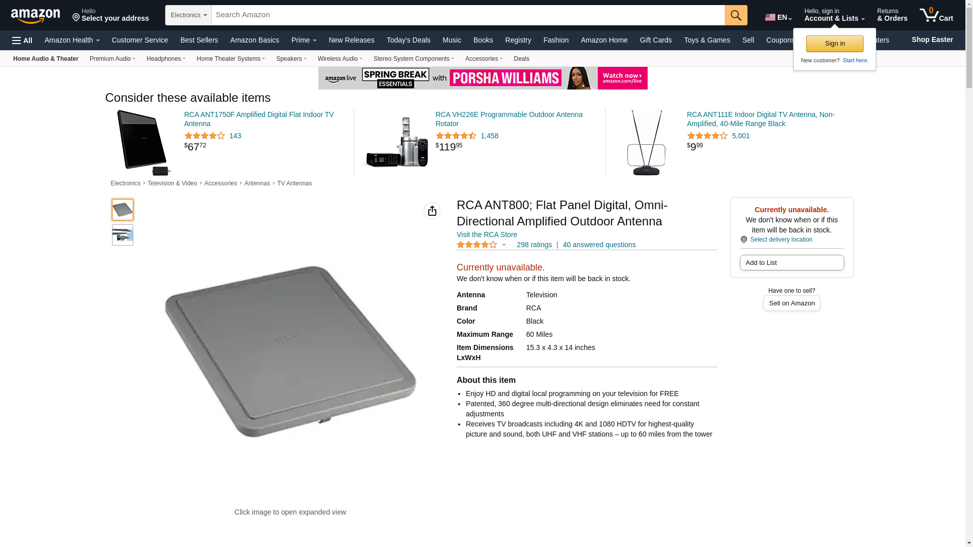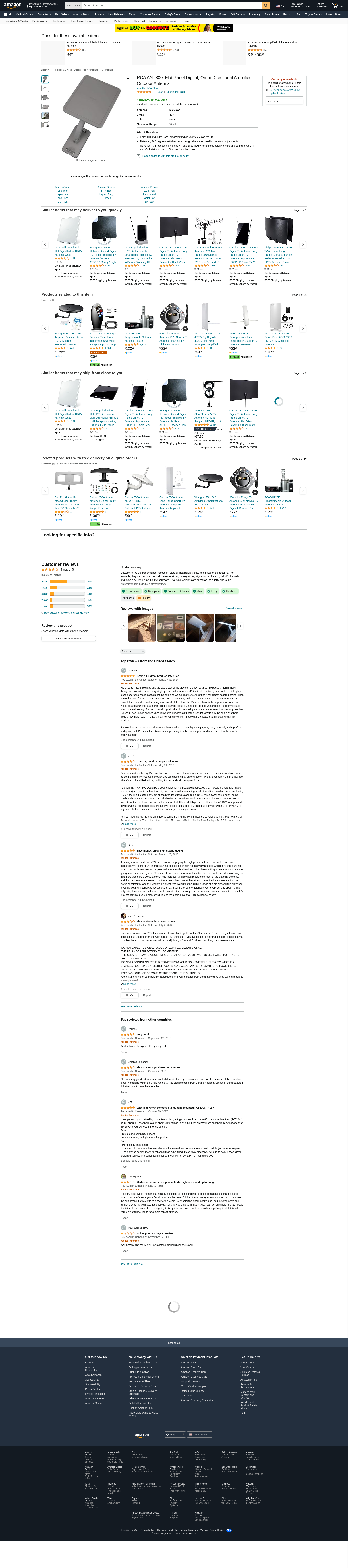RCA Ultra-Thin, Multi-Directional, Indoor Amplified HDTV Antenna with 60 Mile Range. Enjoy HD and digital local progr...