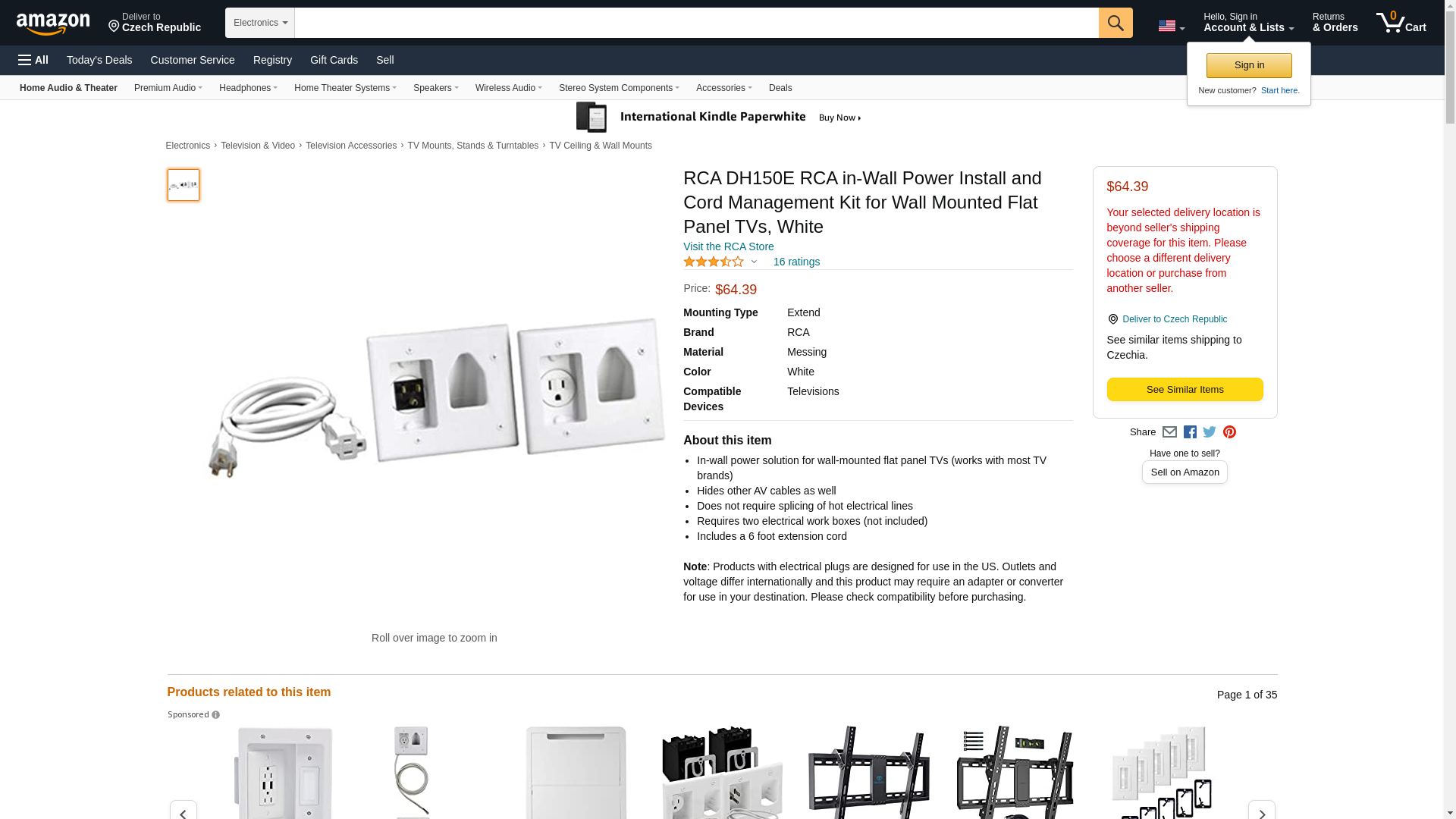 RCA DH150E RCA in-Wall Power Install and Cord Management Kit for Wall Mounted Flat Panel TVs, White