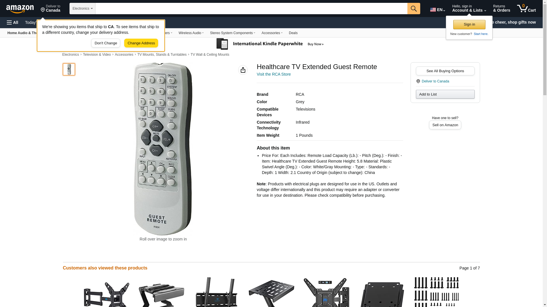 - Price For: Each Includes: Remote Load Capacity (Lb.): - Pitch (Deg.): - Finish: - Item: Healthcare TV Extended Guest Remote Height: 5.8 Material: Plastic Swivel Angle (Deg.): - Color: White/Gray Mounting: - Type: - Standards: - Depth: 1 Width: 2.1 Country of Origin (subject to change): China