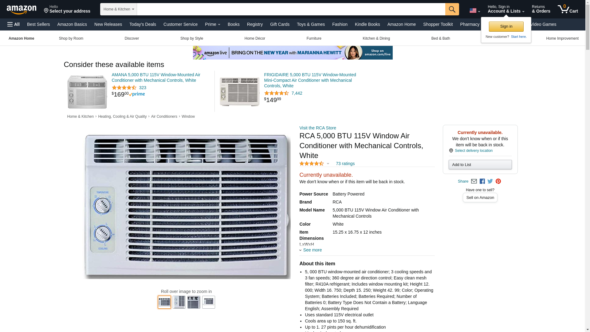 - 5, 000 BTU window-mounted air conditioner; 3 cooling speeds and 3 fan speeds; 360 degree air direction control; Easy clean mesh filter; R410A refrigerant; Includes window mounting kit; Height 12. 000; Width 16. 750; Depth 15. 250; Weight 42. 99; Color; Operating System; Batteries Included; Batteries Required; Number of Batteries 0; Battery Type Does Not Contain a Battery; Language English; Assembly Required