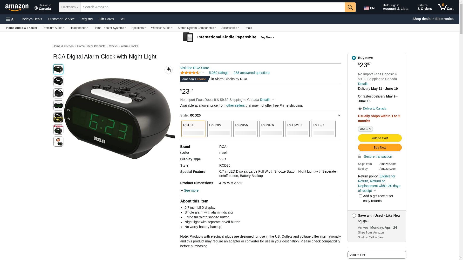 RCA Digital Alarm Clock with .7" Green Display - RCD20