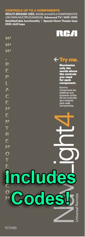 As an Amazon Associate, we earn from qualifying purchases. Buy RCA RCR460 and CodesOM Operating Manual RCA . RCR460_AND_CODESOM Gallery Attributes Brand name, Manufacturer name, ManufacturerRCA ConditionNEW Extra Product NameBuy RCA RCR460 and CodesOM Operating Manual extendedQty, qtyInStock0 moq, multiple, tierMinQty11 MPNRCR460_AND_CODESOM qtySourceBlockString SKU60979 tierPrice16.95 Distributor offers SellerSKUMOQIn stockMultiplePrices replacementremotes.com60979111 @ $6.95