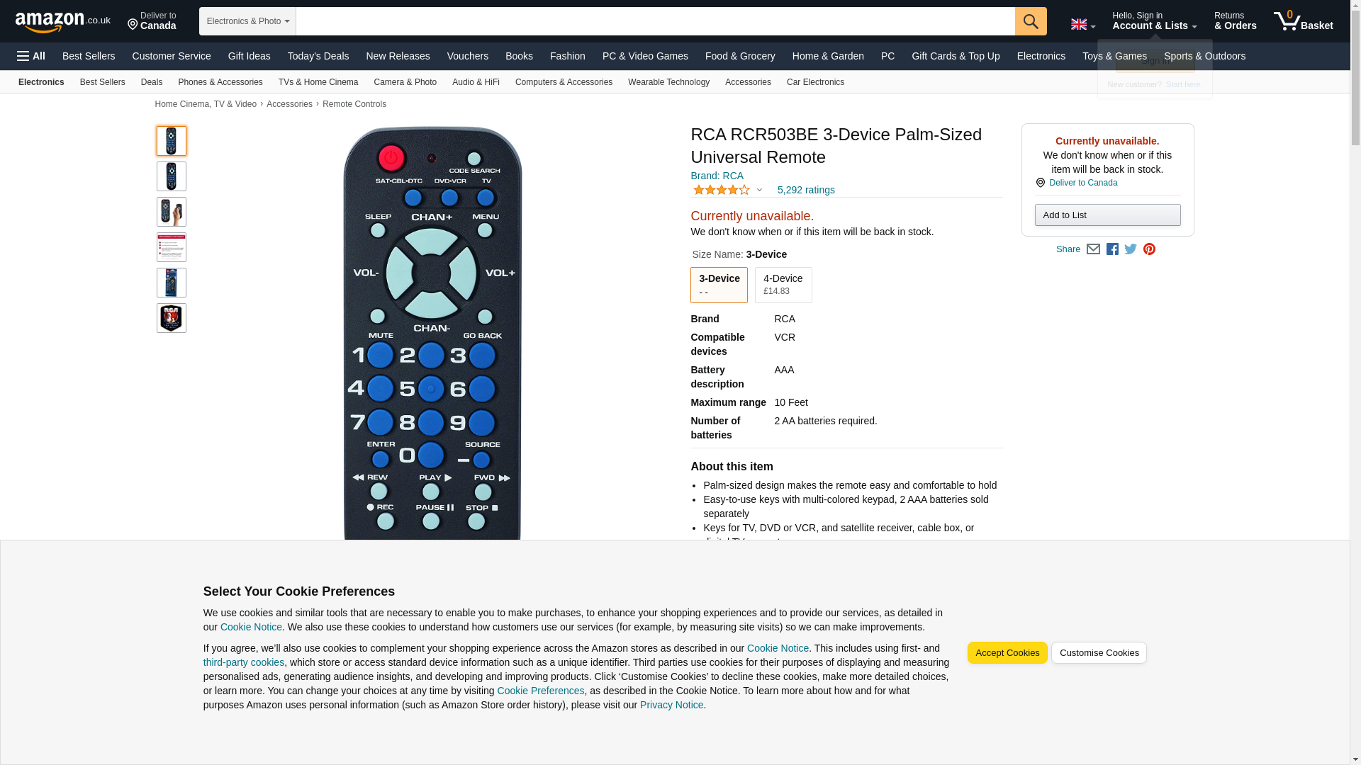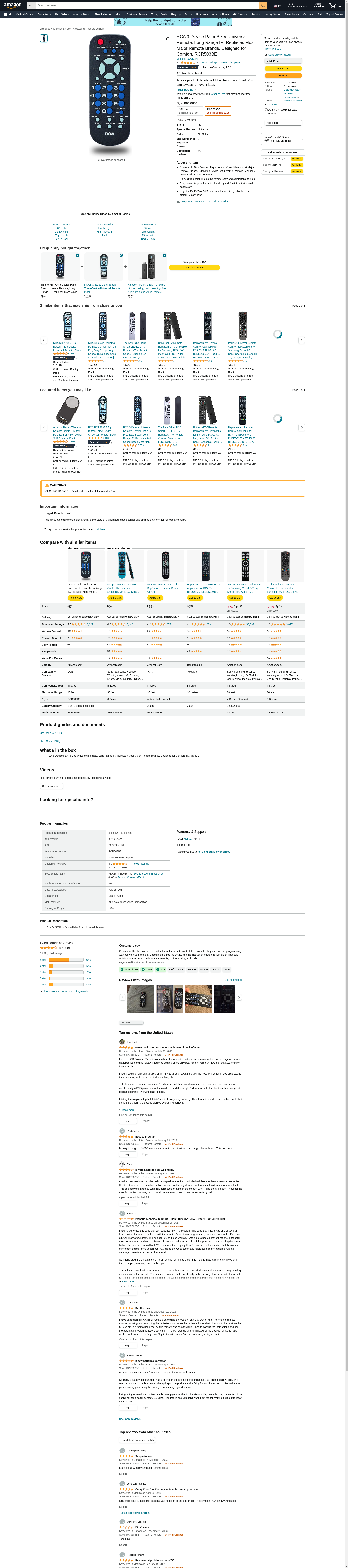 RCA 3-Device Palm-Sized Universal Remote, Long Range IR, Replaces Most Major Remote Brands, Designed for Comfort, RCR503BE