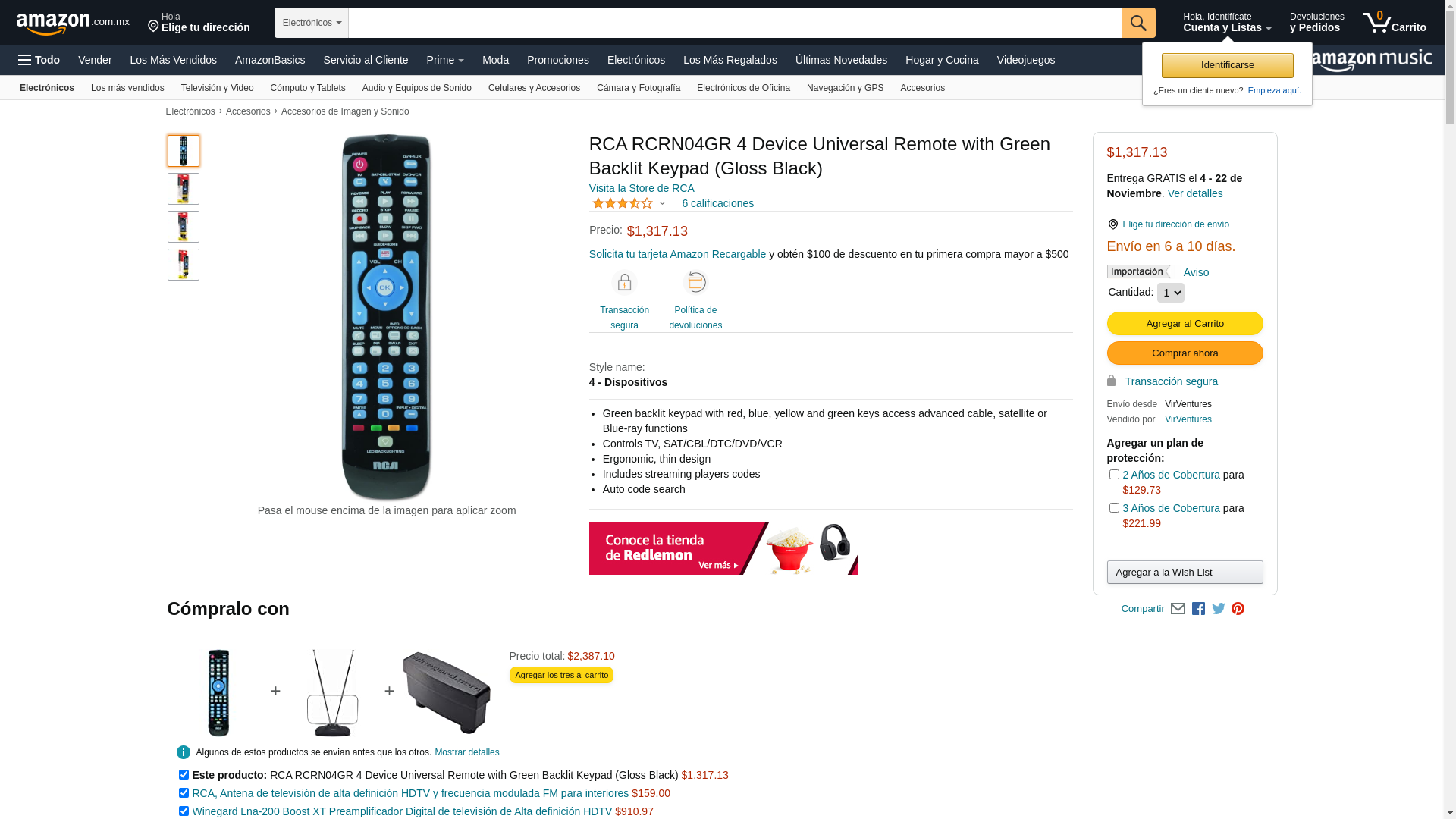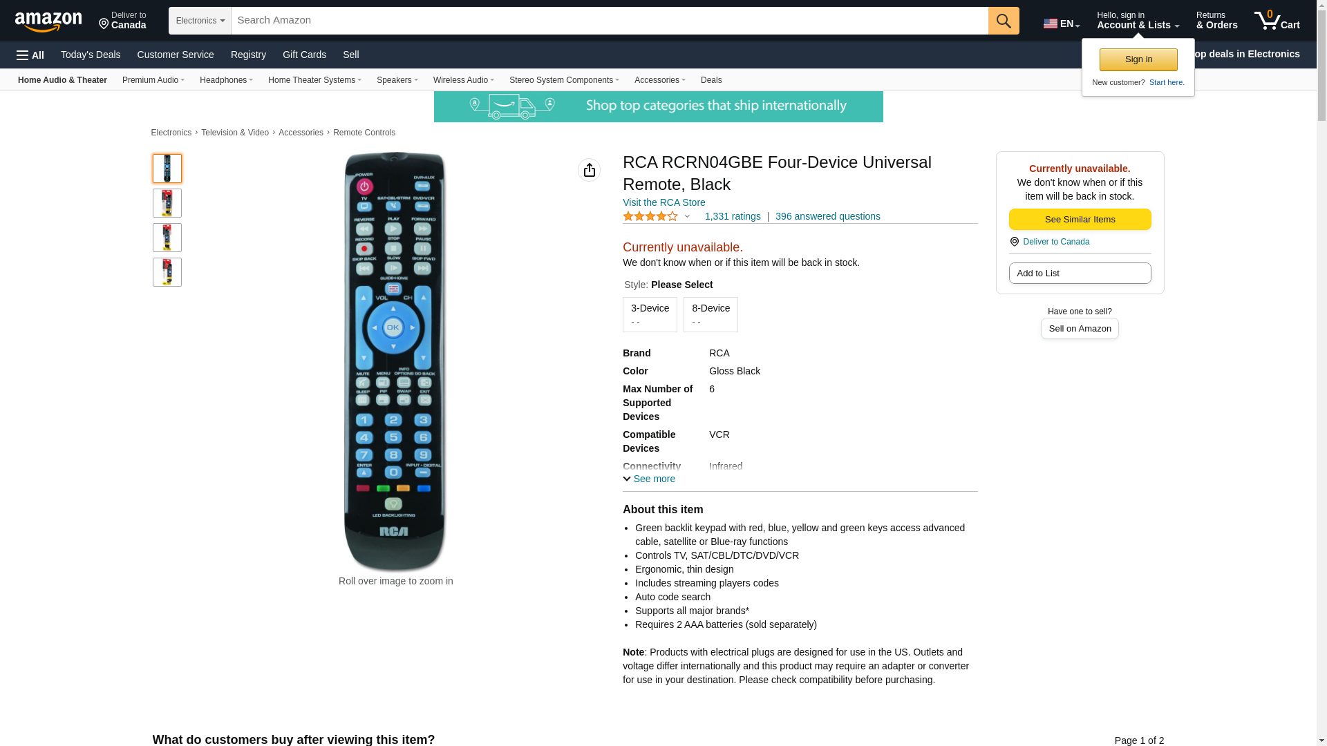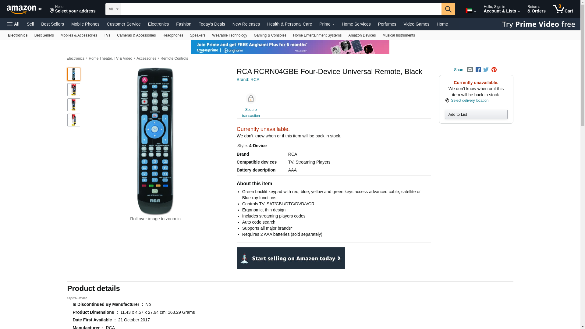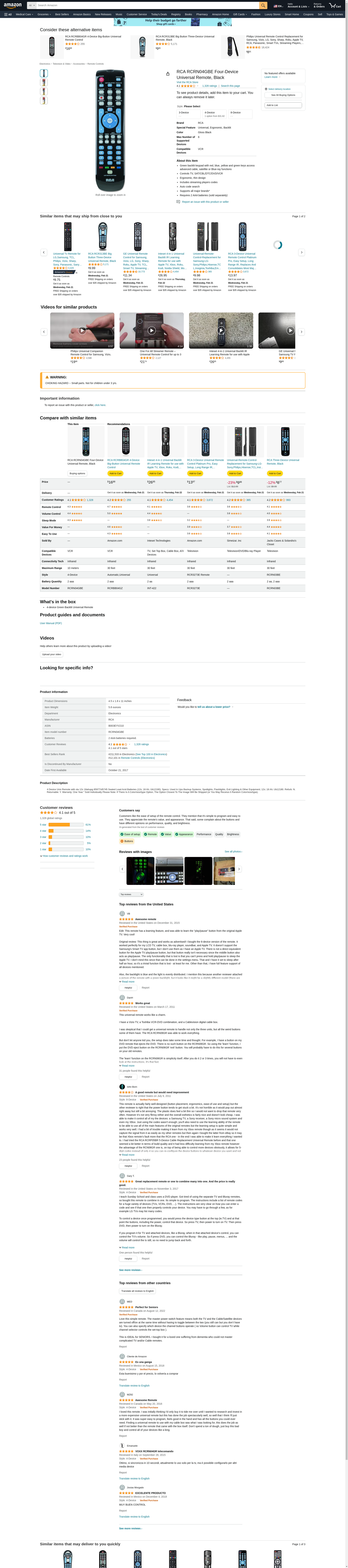 RCA RCRN04GBE Four-Device Universal Remote, Black