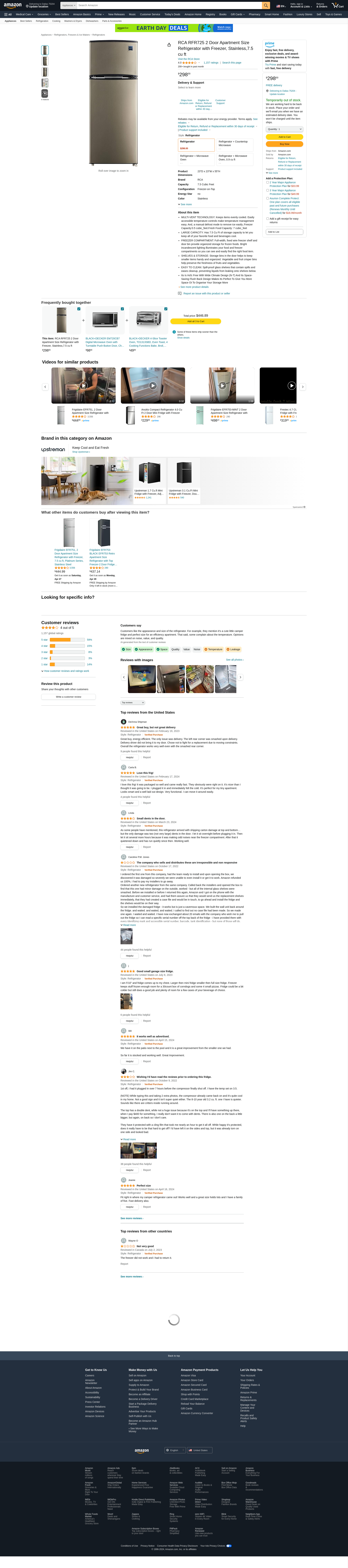 RCA RFR725 2 Door Apartment Size Refrigerator with Freezer, Stainless,7.5 cu ft
