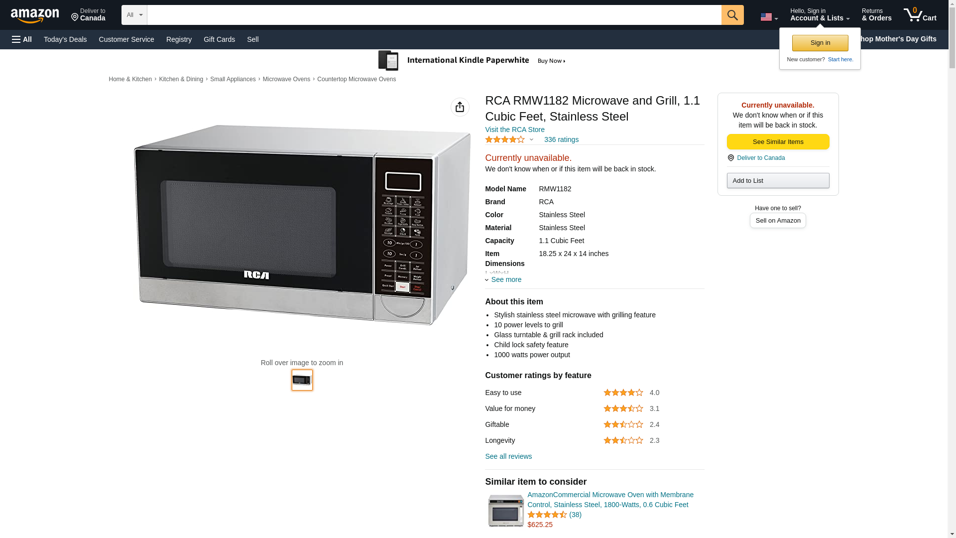 RCA RMW1182 Microwave and Grill, 1.1 Cubic Feet, Stainless Steel
