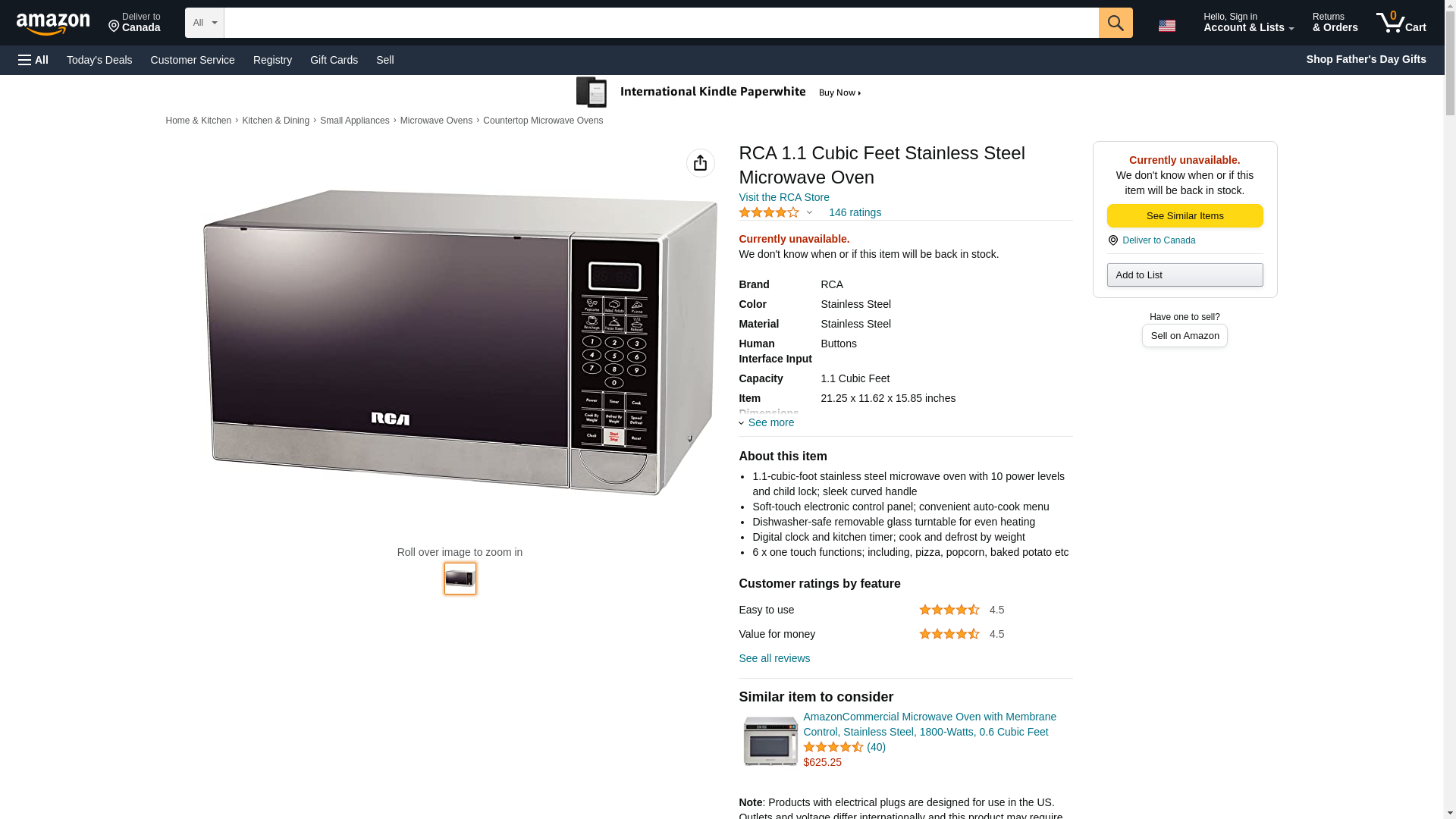 RCA 1.1 Cubic Feet Stainless Steel Microwave Oven