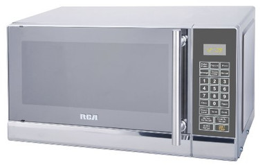 Get efficient cooking with the RCA 0.7 cu. ft. Countertop Microwave in Stainless Steel. It has 700 watts of cooking power and 10 power levels. The size accommodates many different sizes of dishes, while six 1-touch menu options offer you easy operation. More user-friendly features include a glass turntable for cooking food evenly and an interior light for easy viewing.