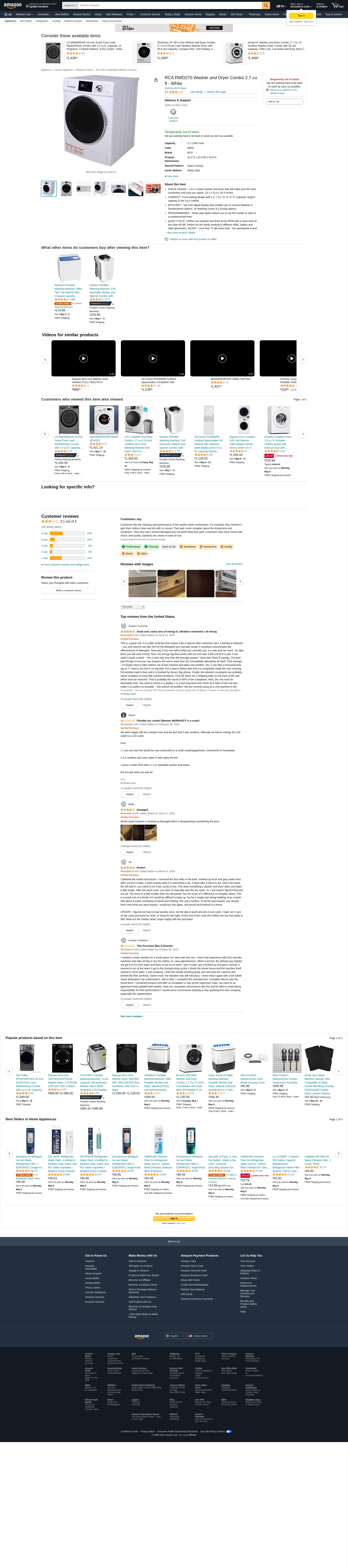 RCA RWD270 Washer and Dryer Combo 2.7 cu ft - White - Smoke Home & Garden