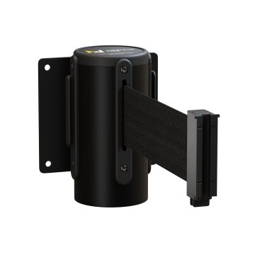 - Includes (1) Wall Mounted Retractable Belt Barrier with Fixed Mount, Black Casing and 11 ft Black belt with Standard Belt End (1) Wall Receiver and Hardware