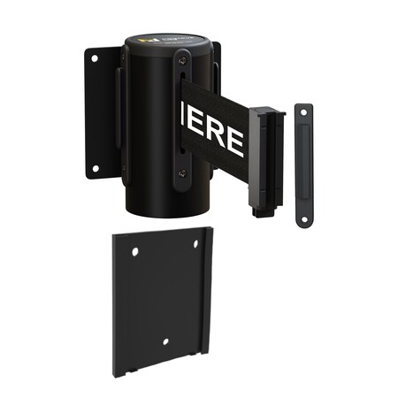 - Includes (1) Wall Mounted Retractable Belt Barrier with Removable Mount, Black Casing and 11 ft Black with "PLEASE WAIT HERE" White Letters belt with Standard Belt End (1) Wall Receiver and Hardware