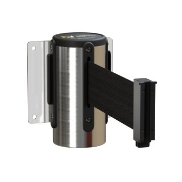 - Includes (1) Wall Mounted Retractable Belt Barrier with Fixed Mount, Polished Stainless Steel Casing and 11 ft Black belt with Standard Belt End (1) Wall Receiver and Hardware