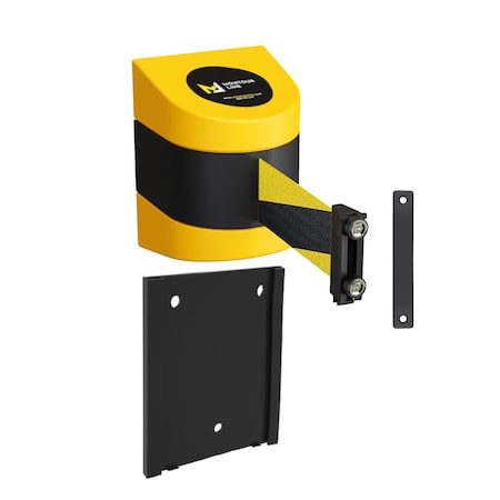 This retractable belt barrier with durable ABS protective case mounts directly to the wall or fastens to posts with various mounting styles. This keeps floors clear of trip and fall hazards and achieves space efficient safety or crowd control barriers. The durable casing and belt braking technology for slow belt retraction ensure these wall mounts are suitable for day to day use in even tough industrial environments. Yellow cases and a wide variety of belt colors and messaging are available for safety plans requiring high visibility or specific safety messages. The WMXLine 140's 7.5 foot, 9 foot, 11 foot, 13 foot, and 15 foot belts can be conveniently extended or retracted as needed.
