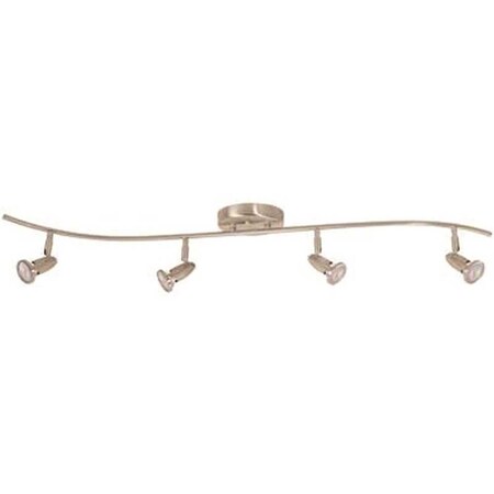 LED track lighting is designed to complement any interior decor and save money. This kit comes with a curved bar and 4 modern shap lights. This track lighting kit features a protective brushed nickel finish, and the LED lights pivot and rotate to direct the light where it is needed most. The LED light engine produces the same light as four 40-Watt incandescent bulbs using only four 6.5-Watt LED bulbs of electricity to save you money. These track lights are perfect for the living room, kitchen, bedroom and other rooms.Durable steel construction is built to lastBulb requirements: 3 in. x 6.5 in. W maximum GU10 LED bulbs includedBrushed nickel finish provides a clean, modern appealEasy install: includes all mounting hardware for quick and easy installationDimmable: fully dimmable with compatible dimmer switch to create the perfect atmosphereTimeless design: with an industrial yet traditional design adds a timeless element to any roomSuitable for dry locationAdjustable track heads: 4 independently adjustable track heads to direct and focus light where you need it most