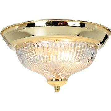 Monument 1-Light Polished Brass Flushmount With Clear Ribbed Swirl Glass | HD Supply