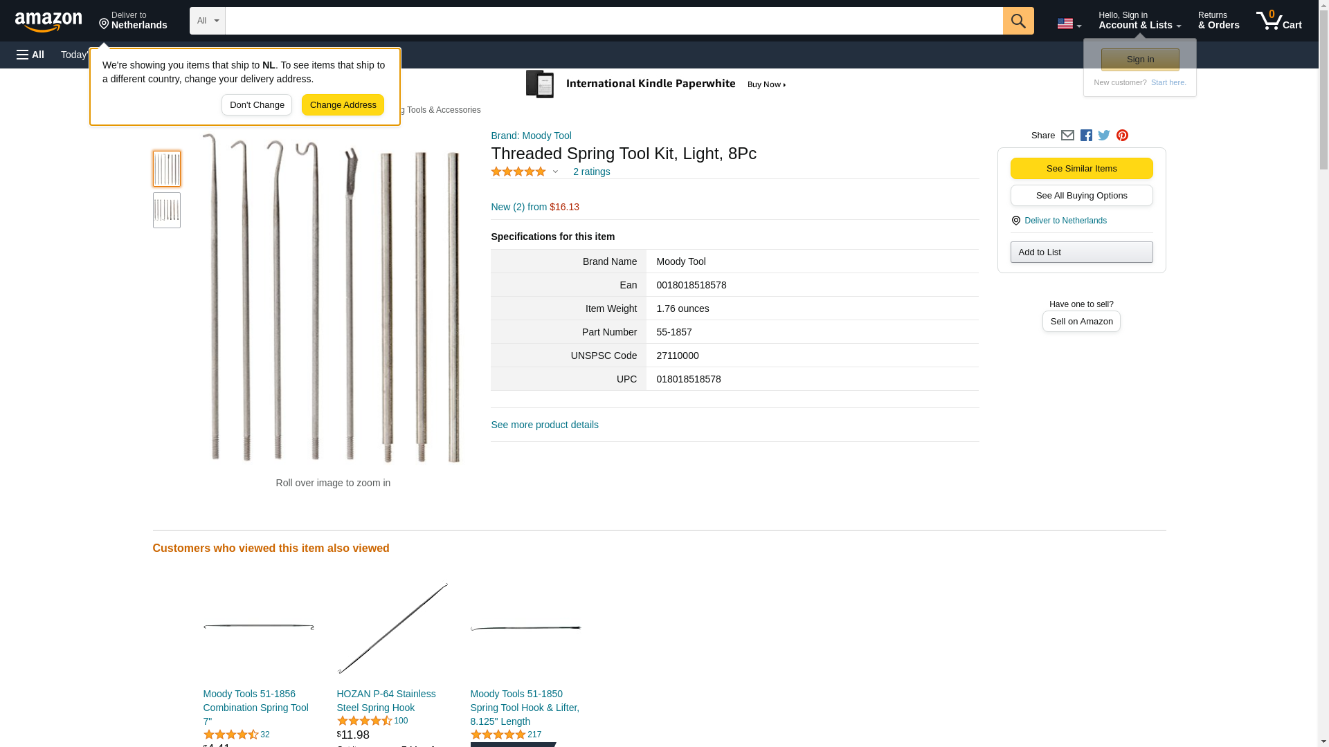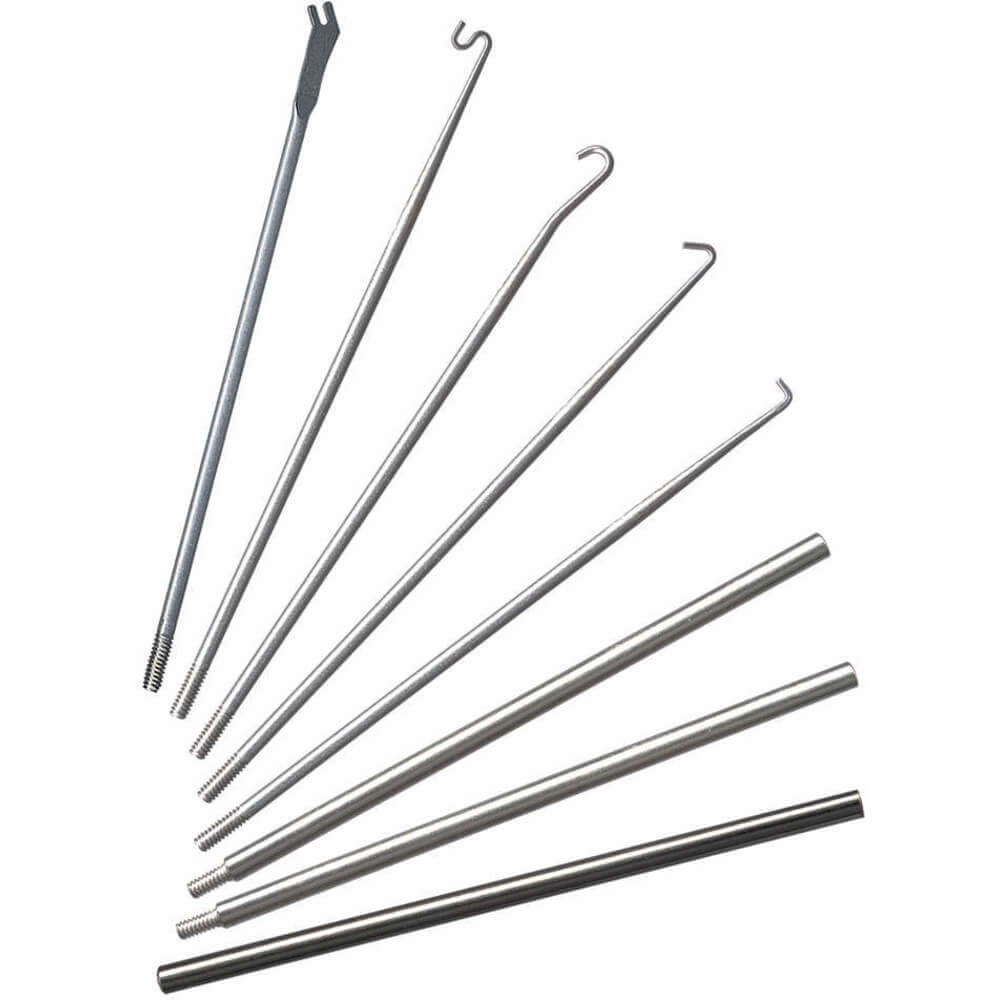 'Threaded Spring Tool Kit, Light, 8Pc, Extendable Features, Tip Shape Pull/Push/Lifter, Threaded Type, Length 8-1/8 to 16-1/8, High Carbon Steel, Nickel Color'