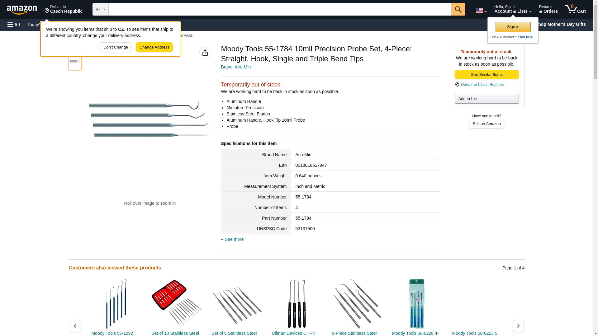 Moody Tools 55-1784 10mil Precision Probe Set, 4-Piece: Straight, Hook, Single and Triple Bend Tips