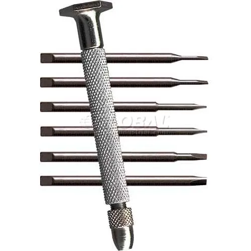 Screwdriver Sets, Precision Screwdriver Set, Screwdriver Tip Style Hex/Phillips/Slotted, Tip Style Group Precision, Tip Size .025 in, .040 in, .055 in, .070 in, .080 in, .100 in, #0, #1, 1/8 in, 3/32 in, 5/32 in, 5/64 in, 7/64 in, Handle Material Steel, Overall Length 4 in, Includes 27 Screwdrivers, 1 replacement blade, 3 in extension, Vinyl pouch, Tether Capable, ESD Safe No, Insulated No, Nonsparking No, Handle Design Knurled with Rotating Cap, Number of Pieces 55, Shank Shape Round