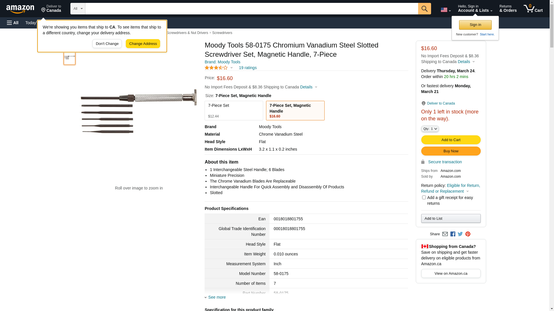 Moody Tools - Slotted Driver Set, 7Pc Mag Handle in Pouch - 58-0175