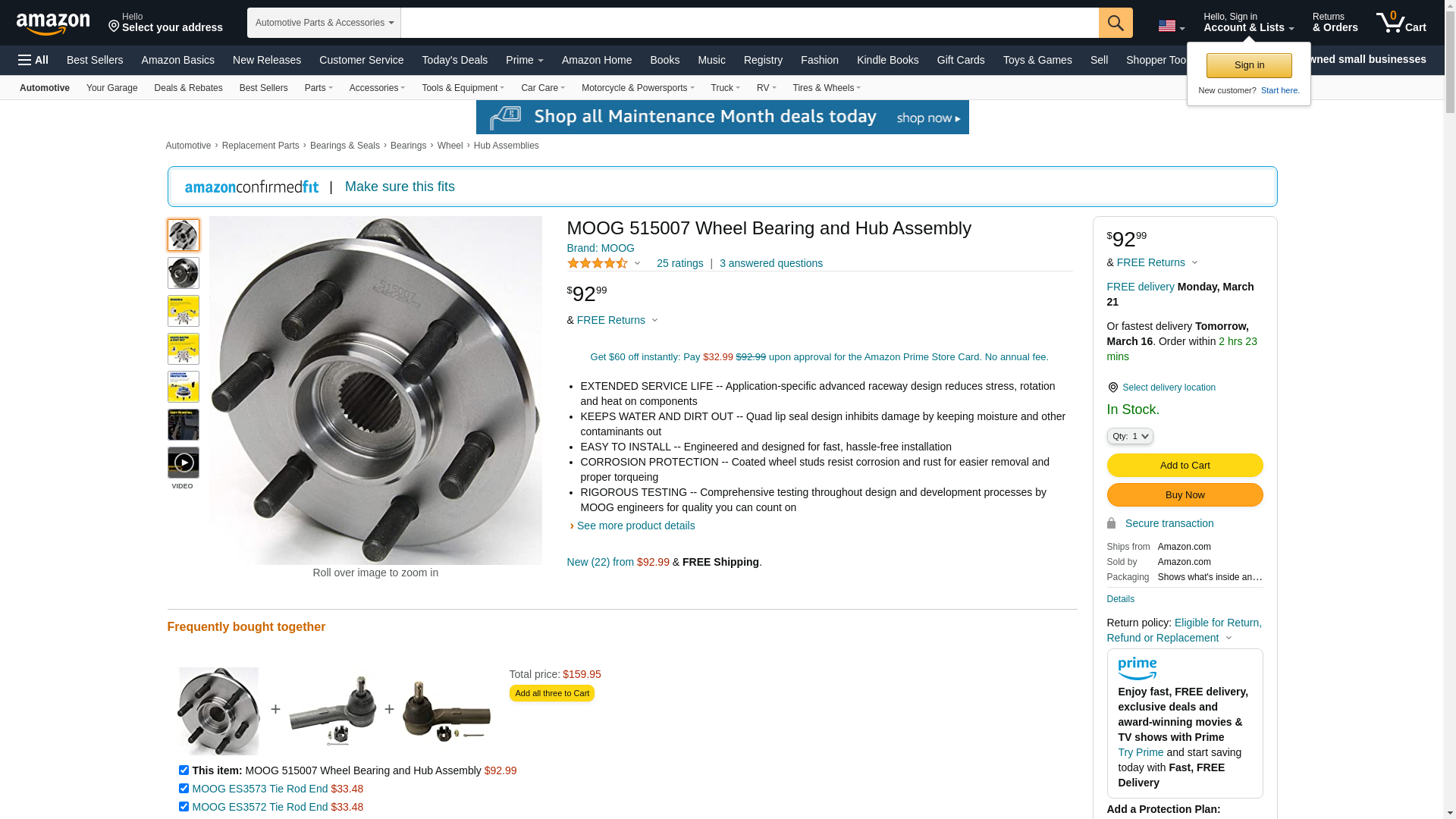 MOOG Hub Assemblies Wheel Bearing and Hub Assembly P/N:515007 sold by Shop Eddies | Motoroso