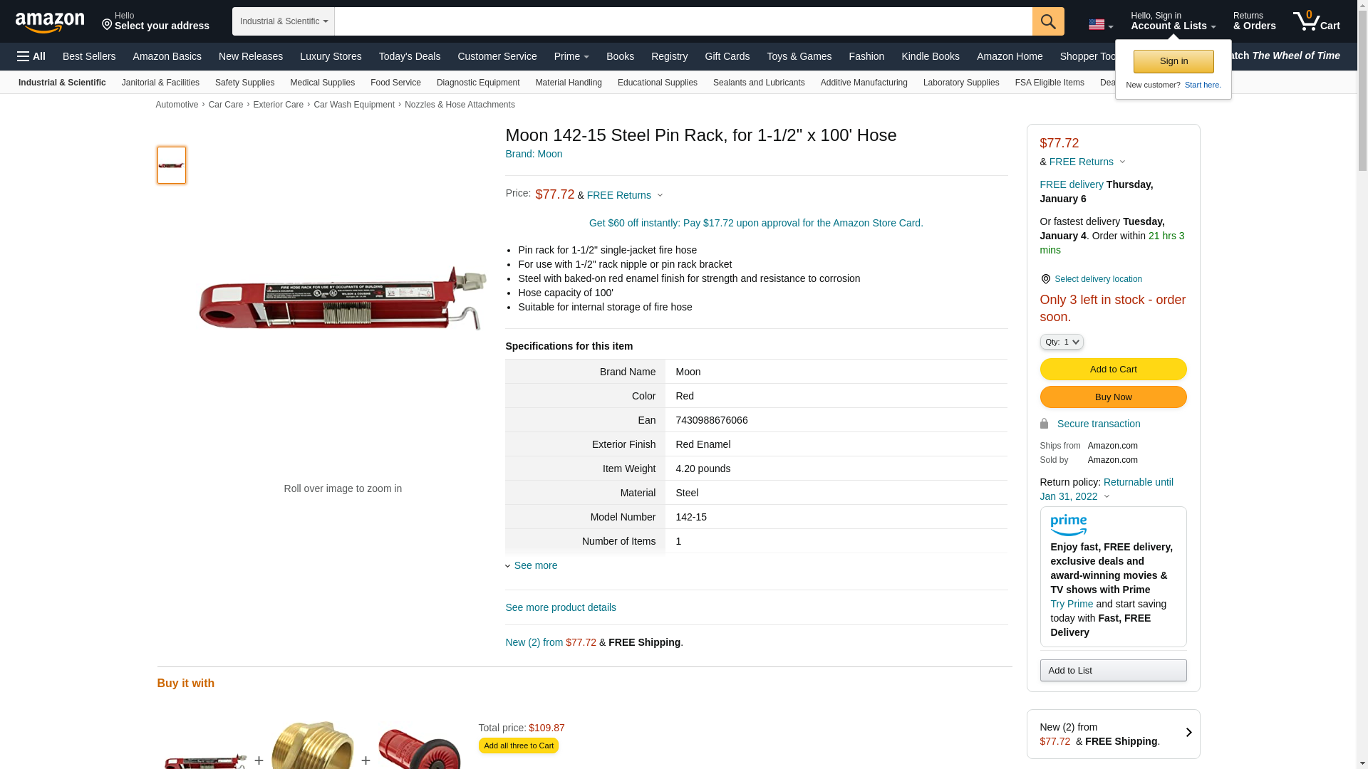 Moon 142-15 Steel Pin Rack, for 1-1/2" x 100' Hose